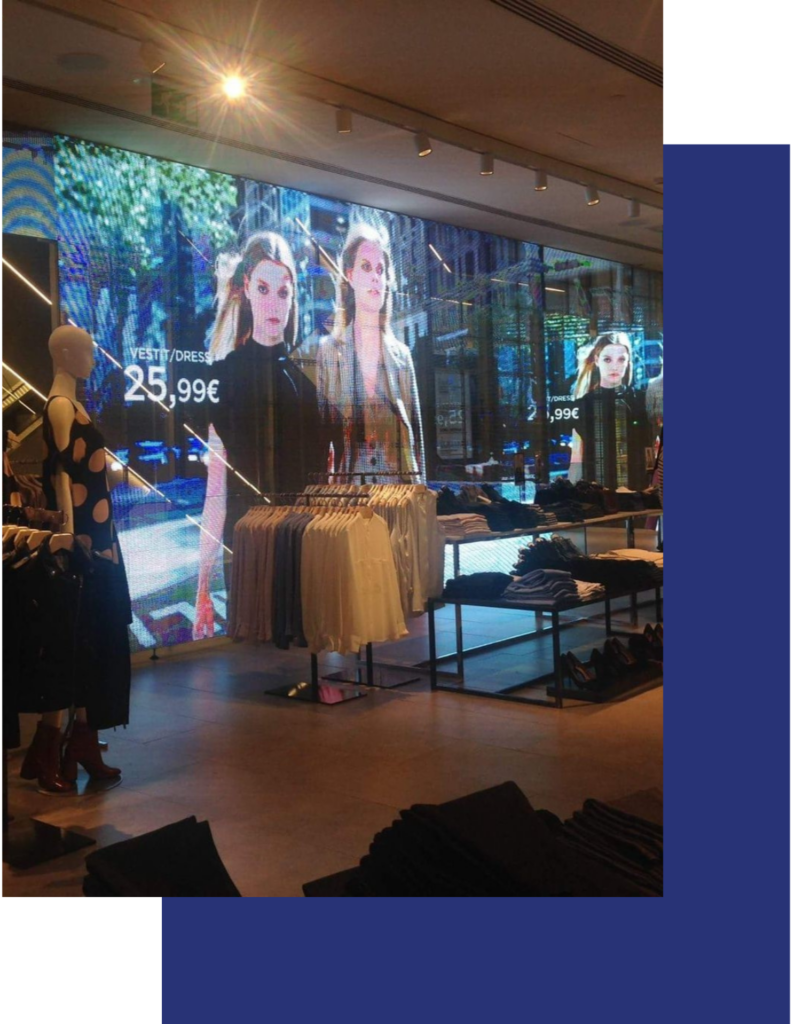 Stand out with a transparent LED screen, the ideal solution to enhance your shop windows and broadcast your commercial content in an innovative, modern and impactful way.